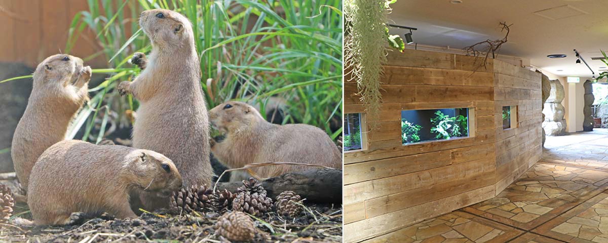穴を掘ったり、走り回ったり、お昼寝したり・・・自由気ままに暮らすプレーリードッグのファミリーたちをご覧いただけます。