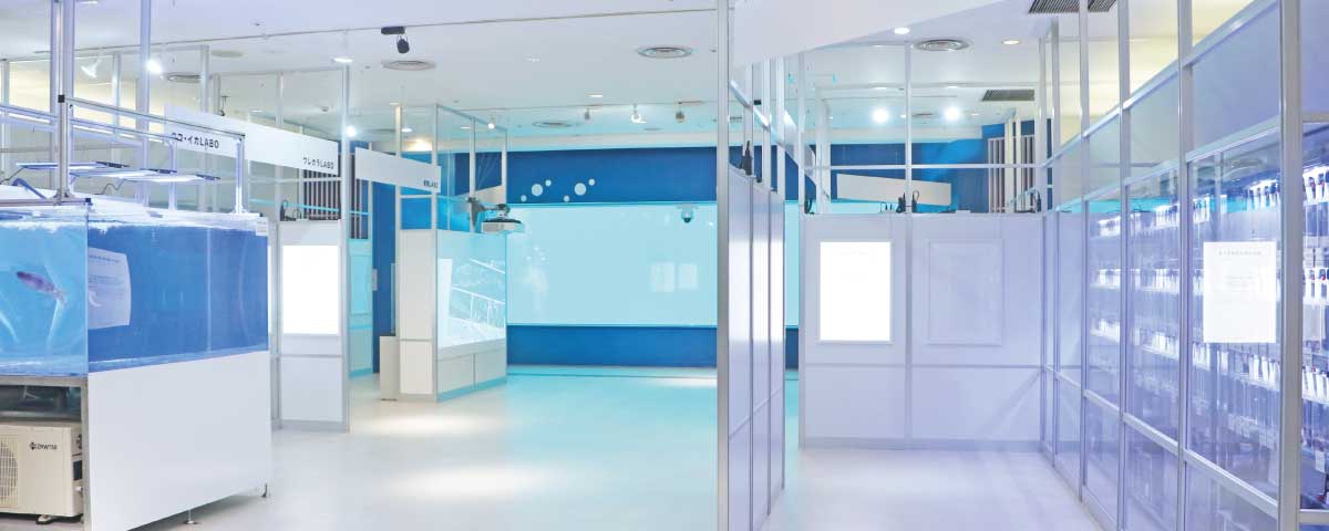 『身近な海の生きもの研究所』では「楽しく学ぶSDGs」をコンセプトに、生物が形作られることの解明や進化の道筋の研究を行う「東京大学三崎臨海実験所」との共同の取り組みを「研究室」に見立てた展示でご紹介します。“身近な海の多様な生物”や“多様な能力”といった、知っているようで知らなかった海の生きものたちの生態や海の豊かさなどにふれ、小さな生きものに宿る命の不思議や美しさを感じていただけます。
