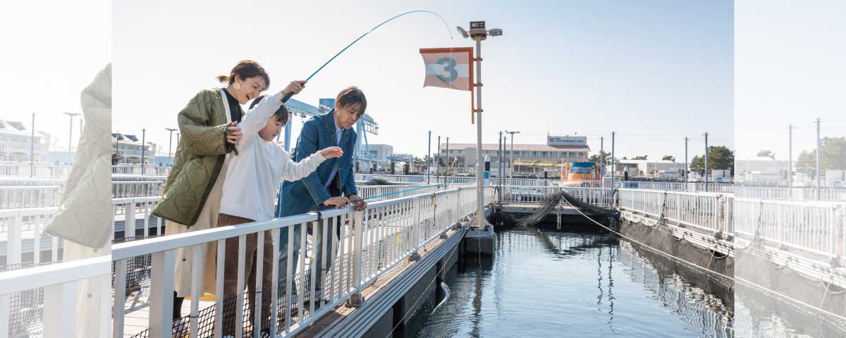 楽しみながら「魚のおいしさ」「命の大切さ」について学べる、うみファームのメインプログラム!釣った魚は「うみファームキッチン」や「Seafood & Grill YAKIYA」で調理し、お召しあがりいただけます。