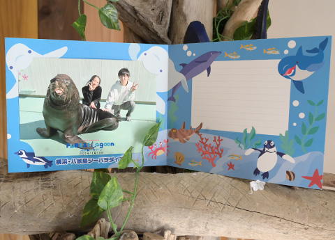 撮影したお写真と海の生きものの写真を入れられます!