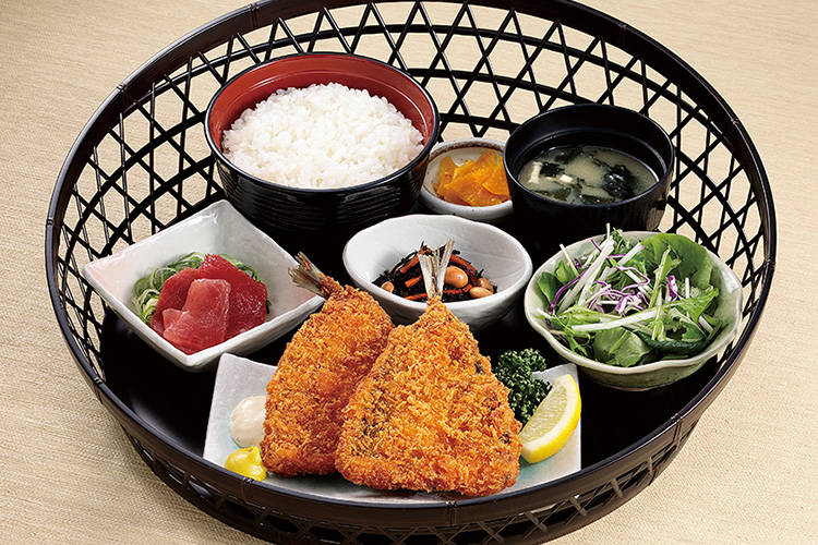丼メニューの他に、キッズメニュー、御膳、カレー、うどんと豊富な品揃え、おっきなタラカツ定食も人気です。